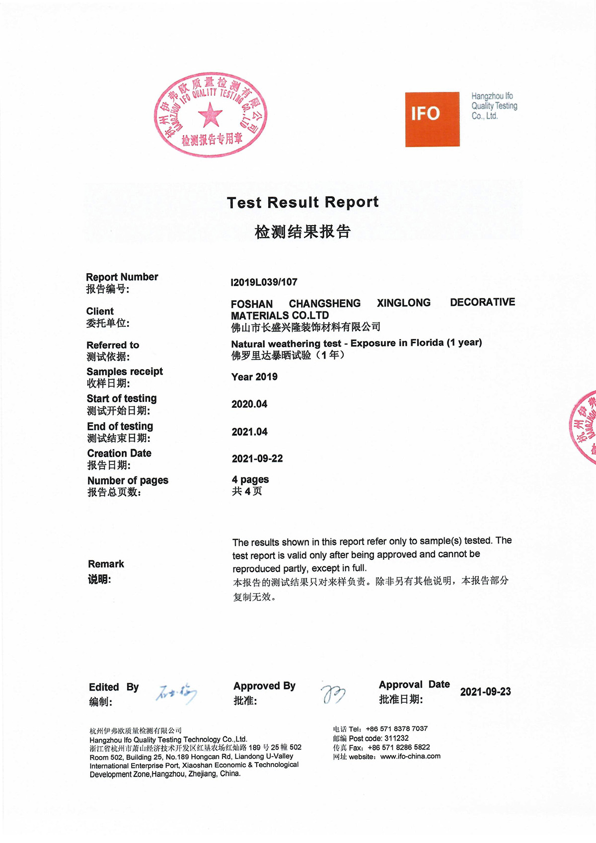 NATURAL WEATHERING TEST-EXPOSURE IN FLORIDA
