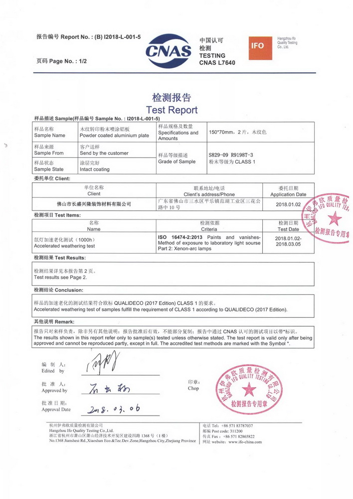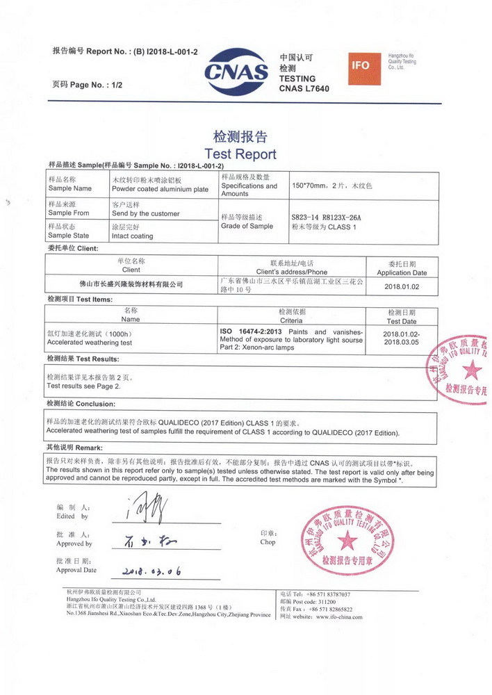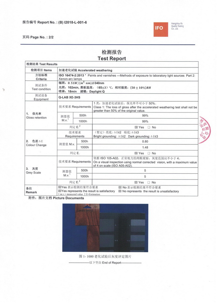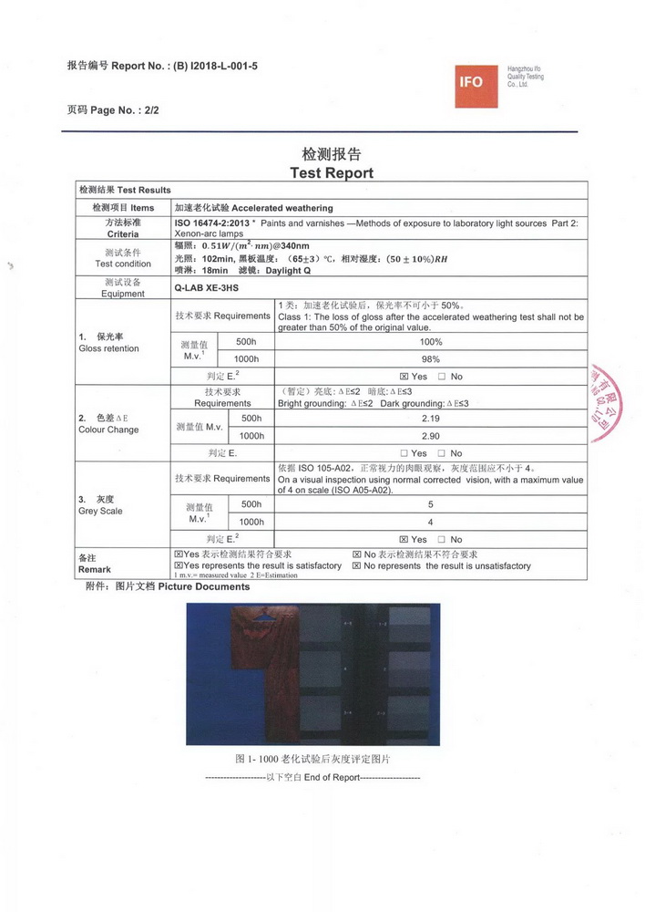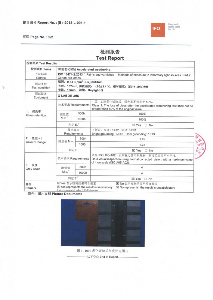Through unremitting efforts, Cheung Sing has become to introduce durable products in China, with a weather resistant of 10-years for external applying, and also so far who have passed the ACCELERATED WEATHERING TEST OF QUALIDECO (2017 Edition).