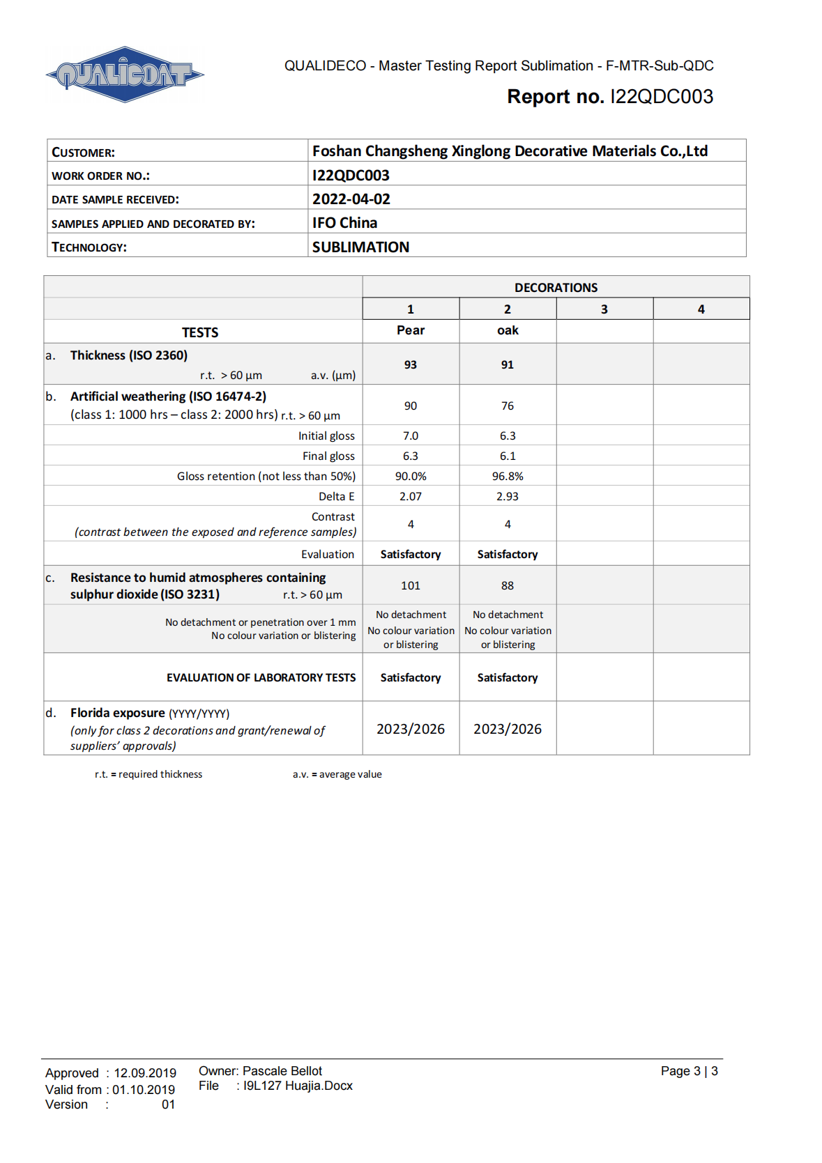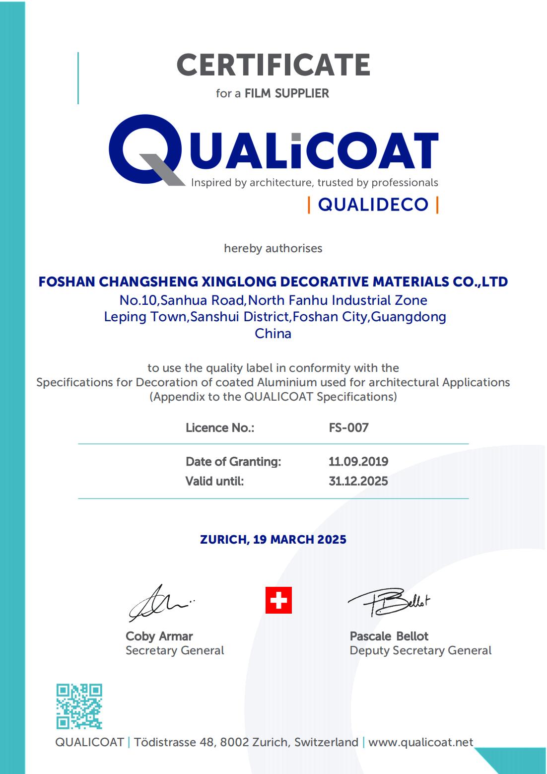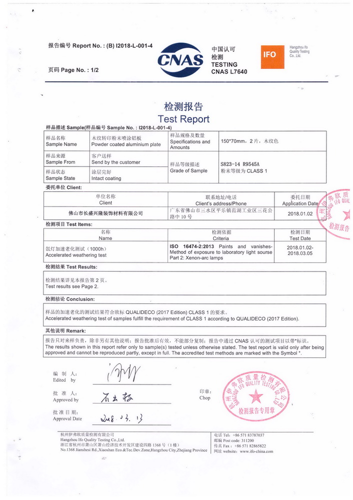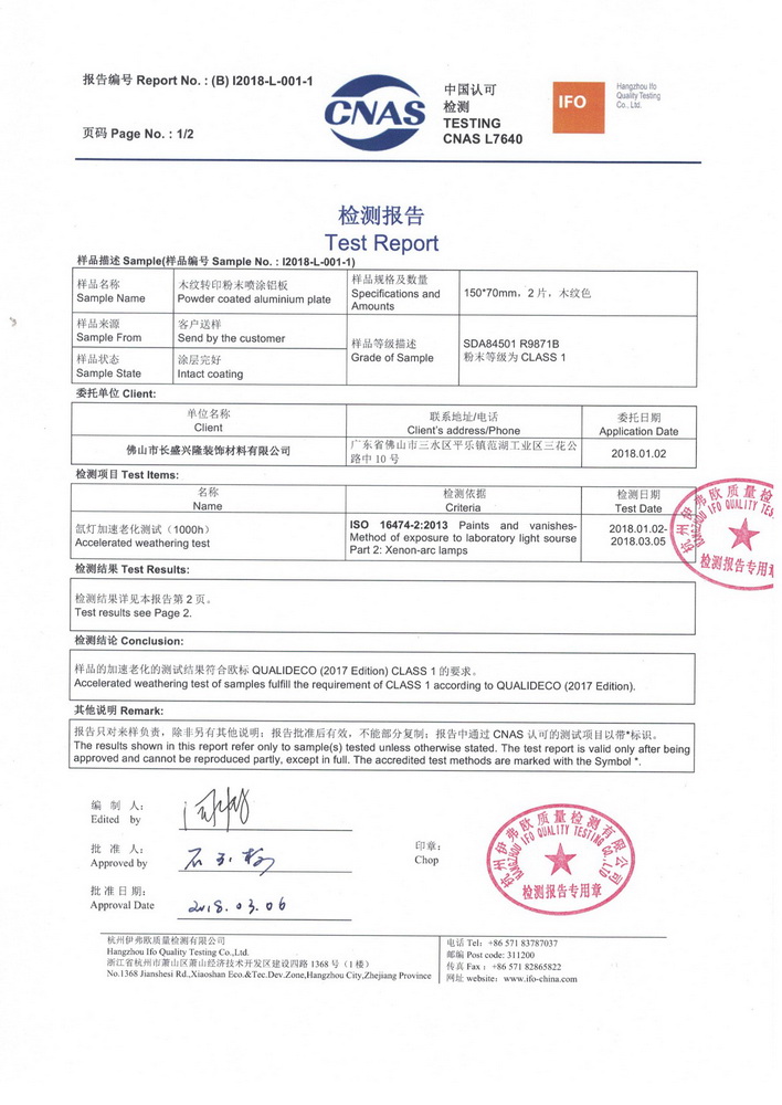 Through unremitting efforts, Cheung Sing has become to introduce durable products in China, with a weather resistant of 10-years for external applying, and also so far who have passed the ACCELERATED WEATHERING TEST OF QUALIDECO (2017 Edition).